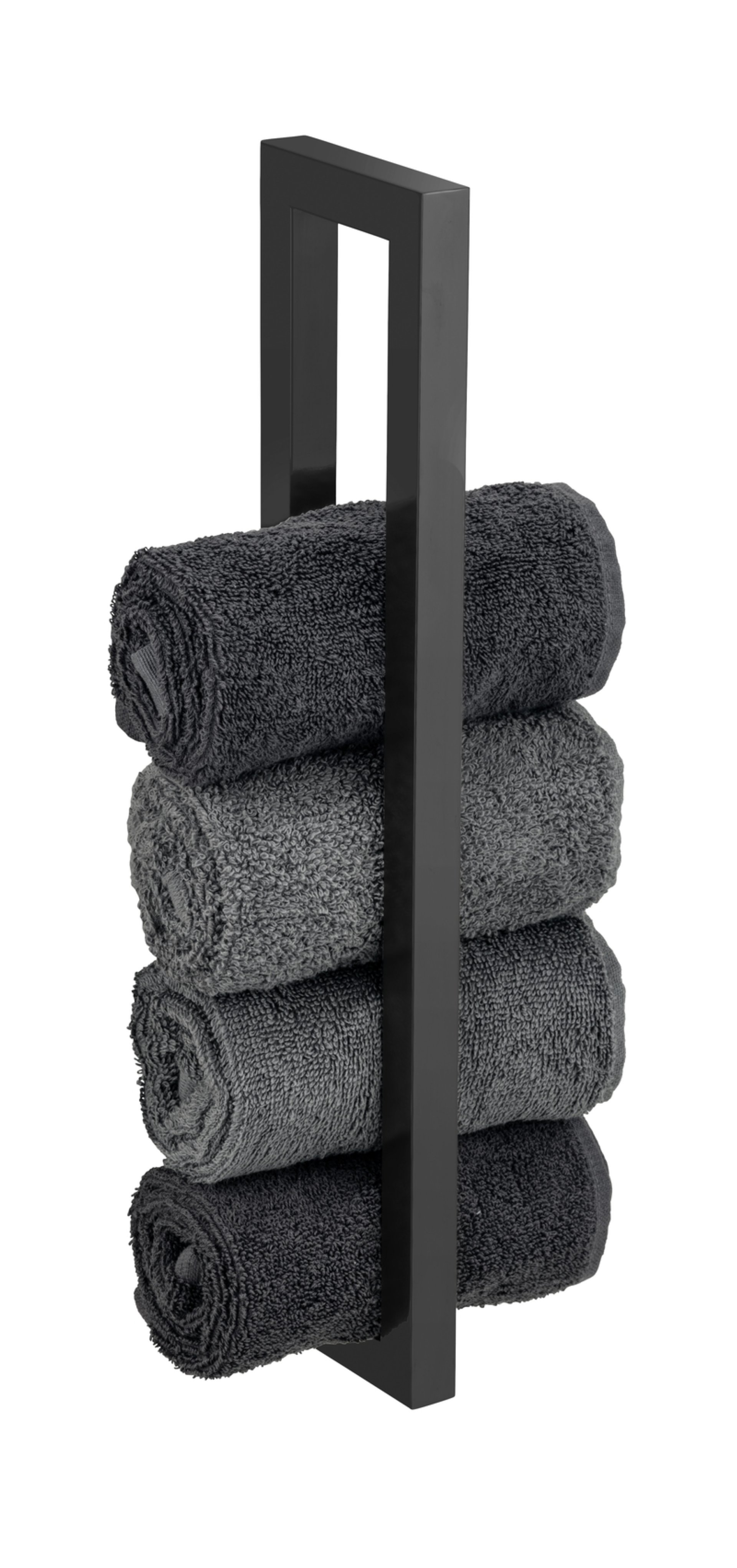 Kreativ gestapelt! Der Handtuchhalter Reitani von WENKO in Schwarz matt bietet einen außergewöhnlichen Anblick in Bad und Gäste-WC! In diesem Wandhalter können kleine Gästehandtücher beinahe schwebend aufbewahrt werden.