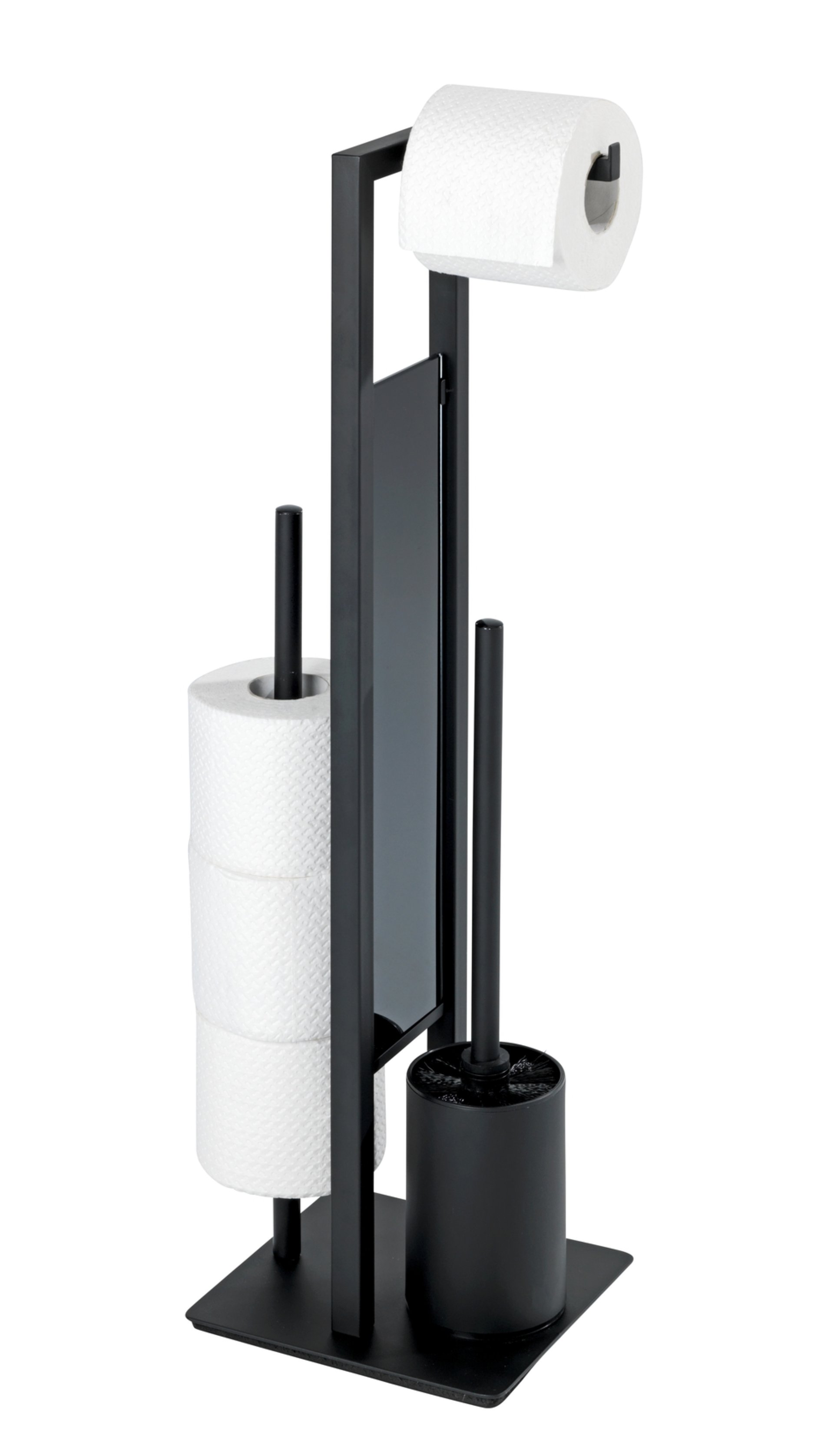 WENKO RIVALTA WC-Garnitur Schwarz matt, mit Toilettenpapierhalter und Bevorrater, stehend