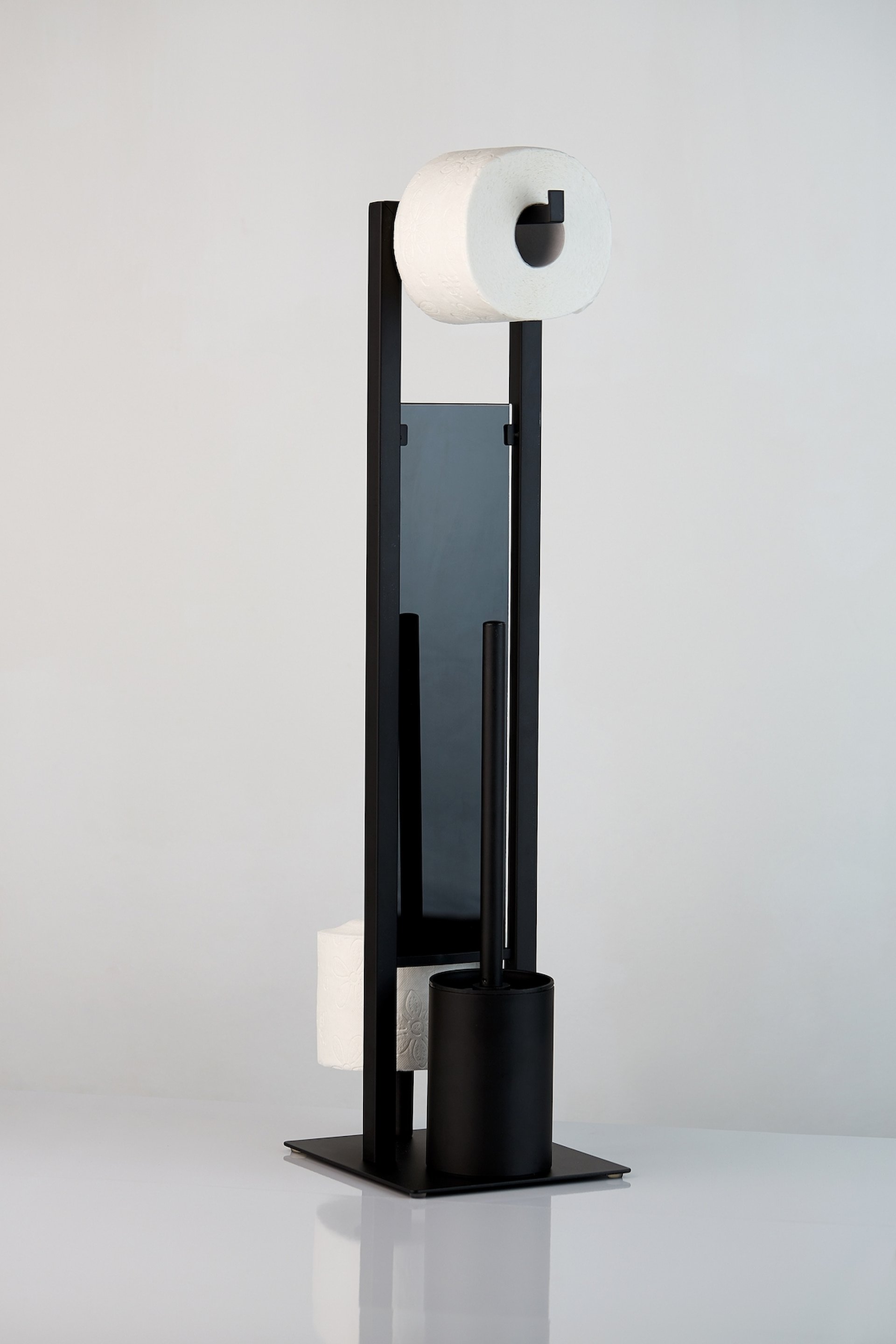 - WC Bürstenhalter im Industrial Design, aus matt lackiertem Stahl in Schwarz und gehärtetem Glas