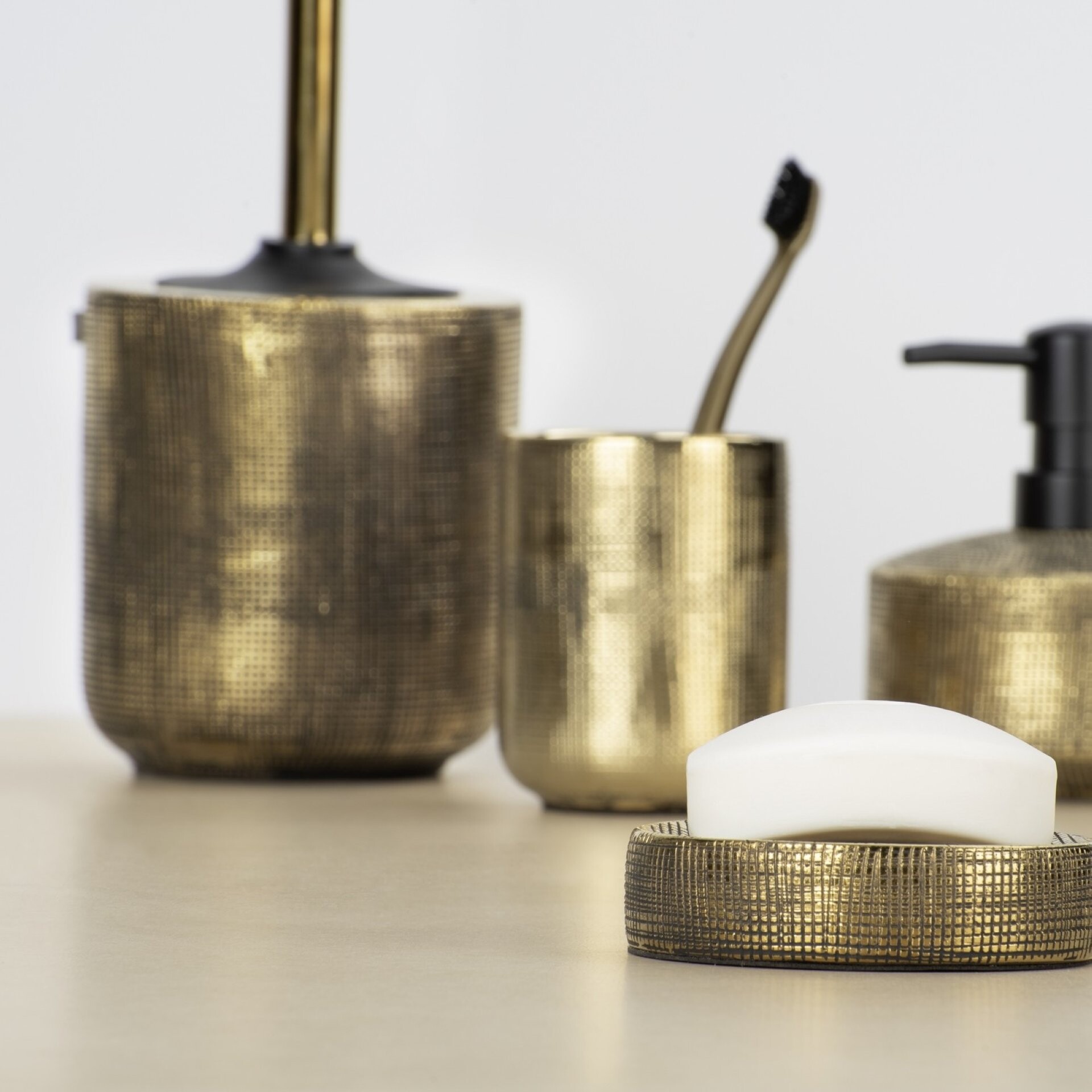 WENKO RIVARA Accessoire Set Gold, Zahnputzbecher, Seifenspender, WC-Garnitur, Keramik