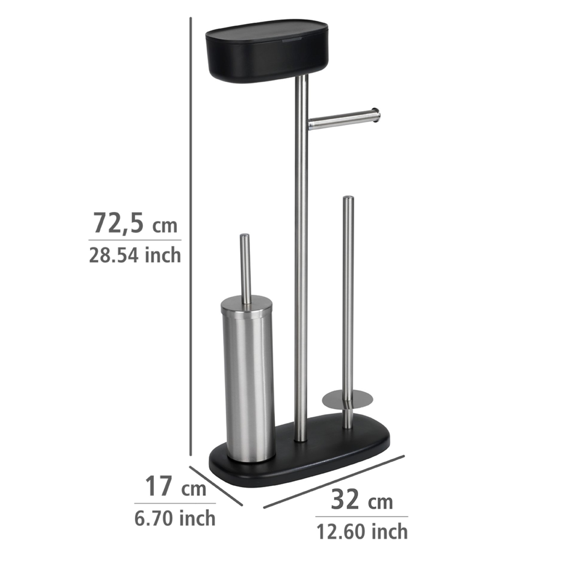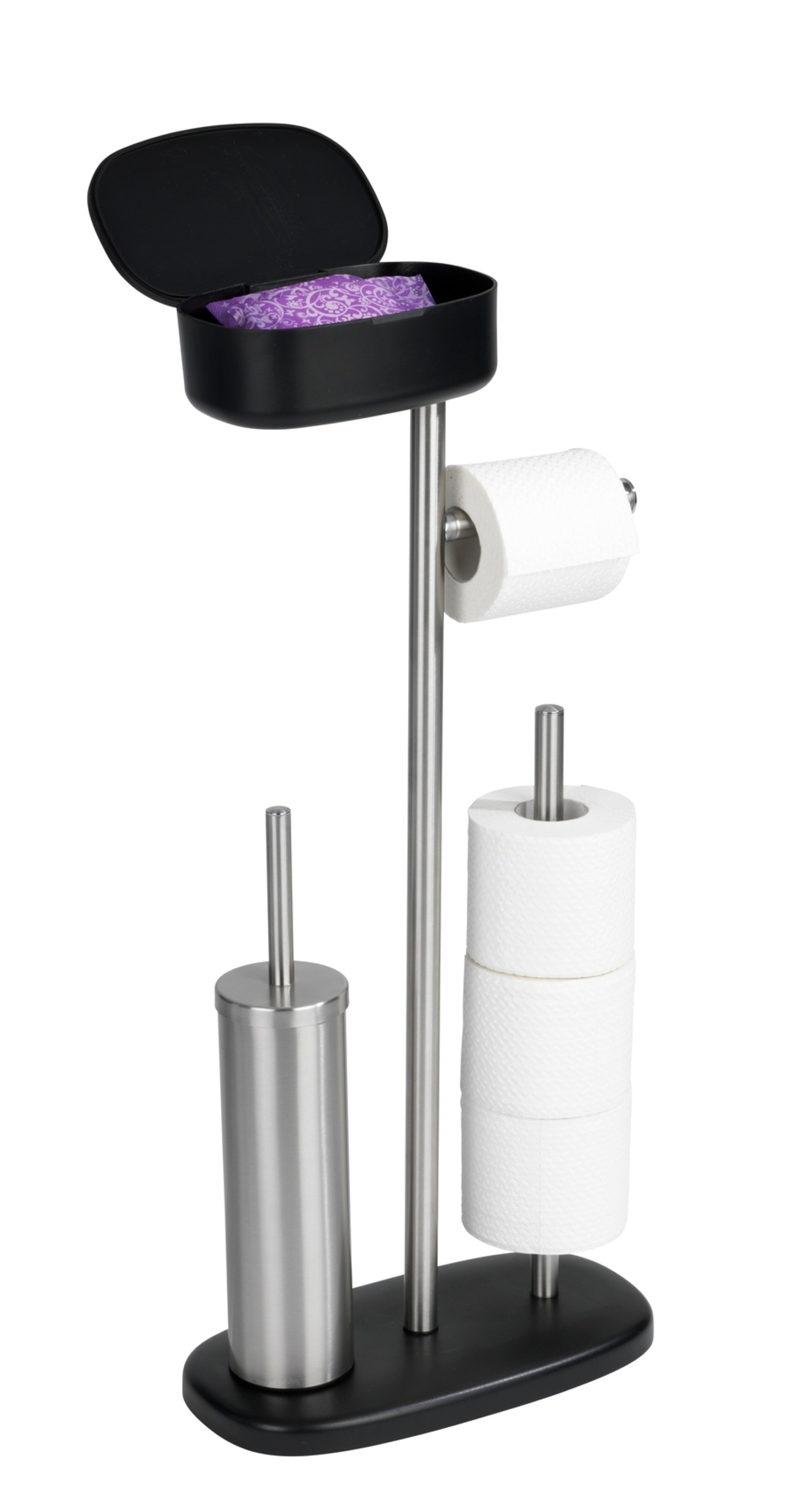 WENKO RIVAZZA WC-Garnitur Schwarz/Silber, mit Toilettenpapierhalter, Bevorrater und Ablage, stehend