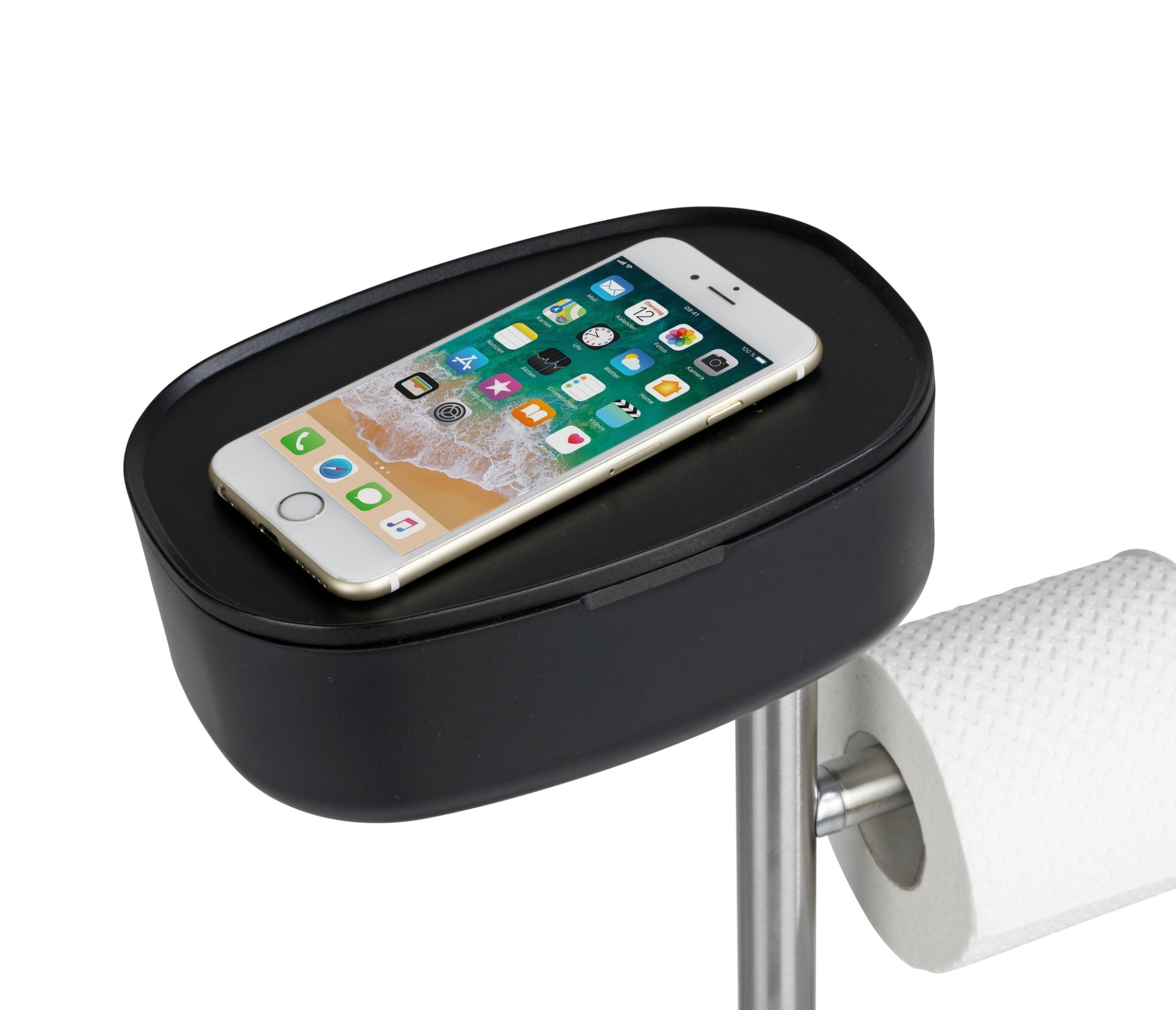 - Der schwarze Standfuß garantiert einen sicheren Stand der WC-Garnitur.