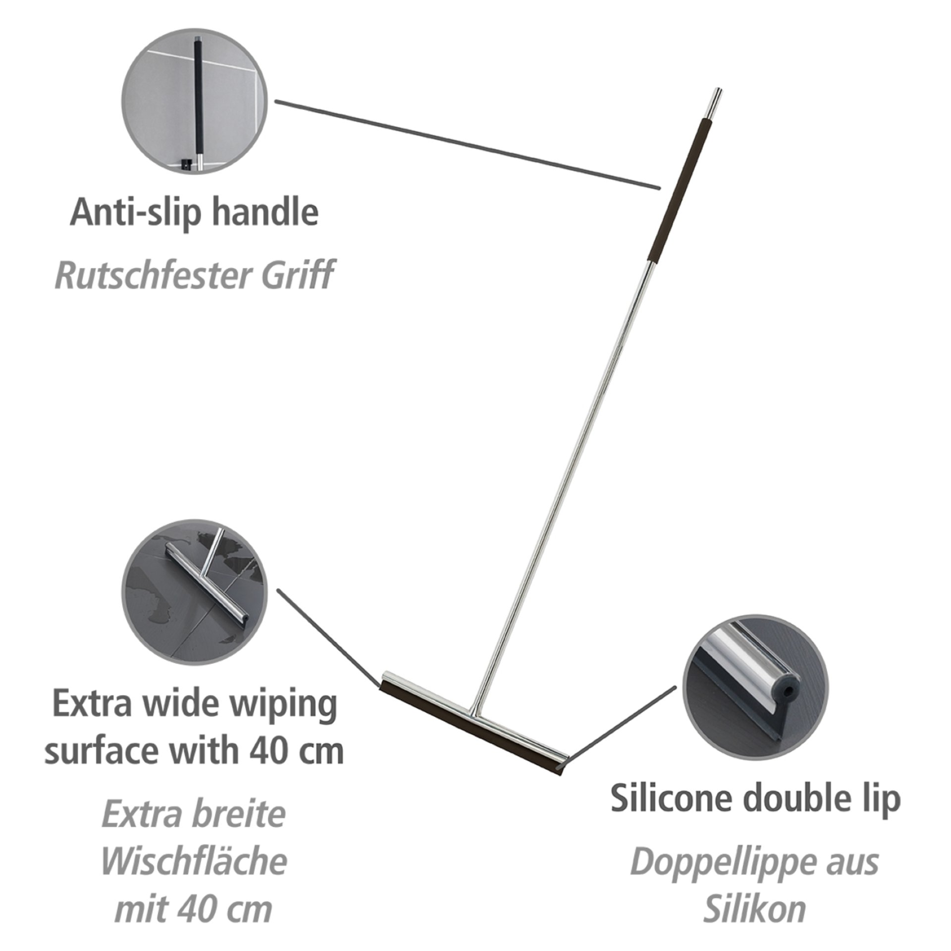 - Der ergonomische Griff ist natürlich mit einer rutschfesten Beschichtung ausgestattet. Mit seiner großen Wischbreite von 40 cm kann der geniale Bodenwischer auch auf großen Flächen mit nur wenigen Zügen das Wasser entfernen.