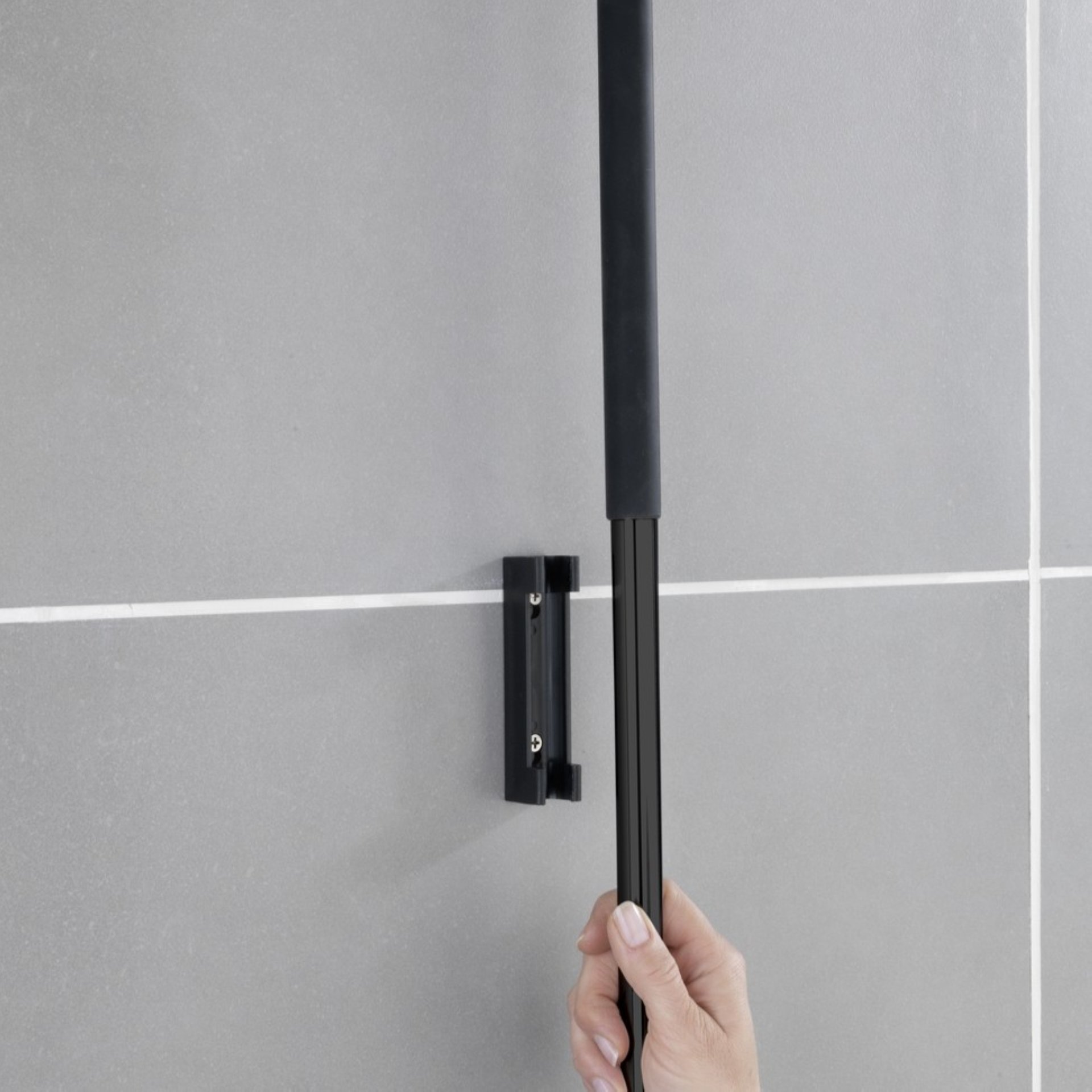 - Der aus rostfreiem Edelstahl hergestellte Duschabzieher in modernem Schwarz verfügt über einen rutschfesten Griff und hat insgesamt schmale Abmessungen von (B x H x T): 40 x 133 x 3 cm. Eine Wandhalterung sowie Befestigungsmaterial für eine Wandmontage sind im Lieferumfang enthalten, sodass der Bodenwischer Rosole von WENKO für den sofortigen Einsatz immer griffbereit aufbewahrt werden kann.