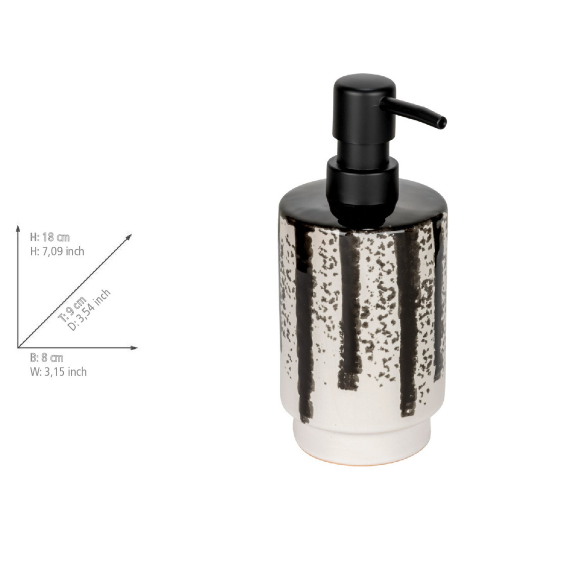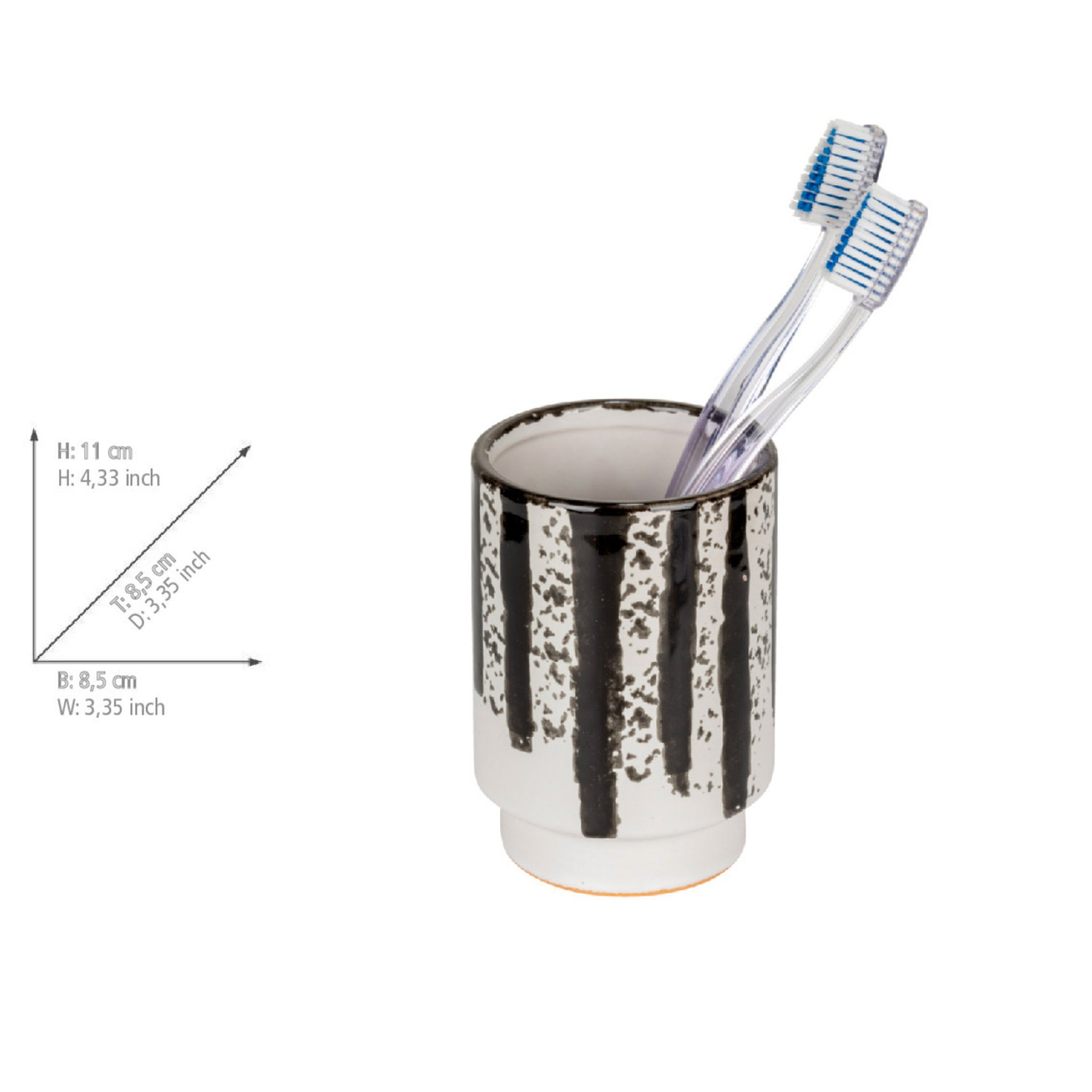 - Das hochwertige Bad-Accessoire Set Subiza von WENKO bringt stilvolle Eleganz in Ihr Badezimmer. Dieses exklusive Bad-Accessoire Set, bestehend aus einem freistehenden Seifenspender und einem Zahnputzbecher, beeindruckt durch seine handbemalte Keramik in modernem Weiß-Schwarz-Design und hebt sich durch seine hohe Qualität hervor.
