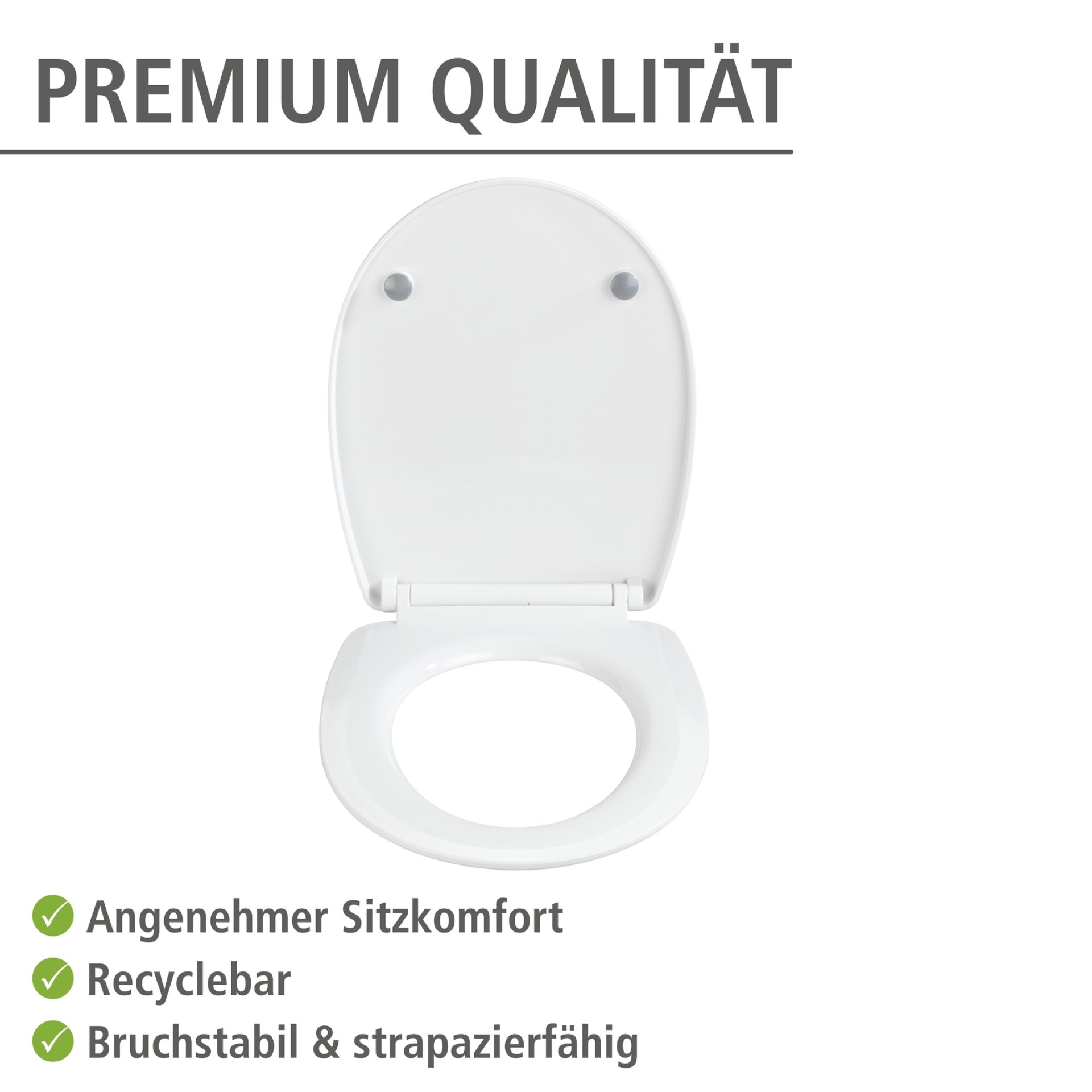 - Der hochwertig verarbeitete WENKO WC-Sitz Varoni aus antibakteriellem Duroplast in der Farbe Weiß hat eine schlichte ovale Deckelform, die in jede Badezimmer Einrichtung passt.