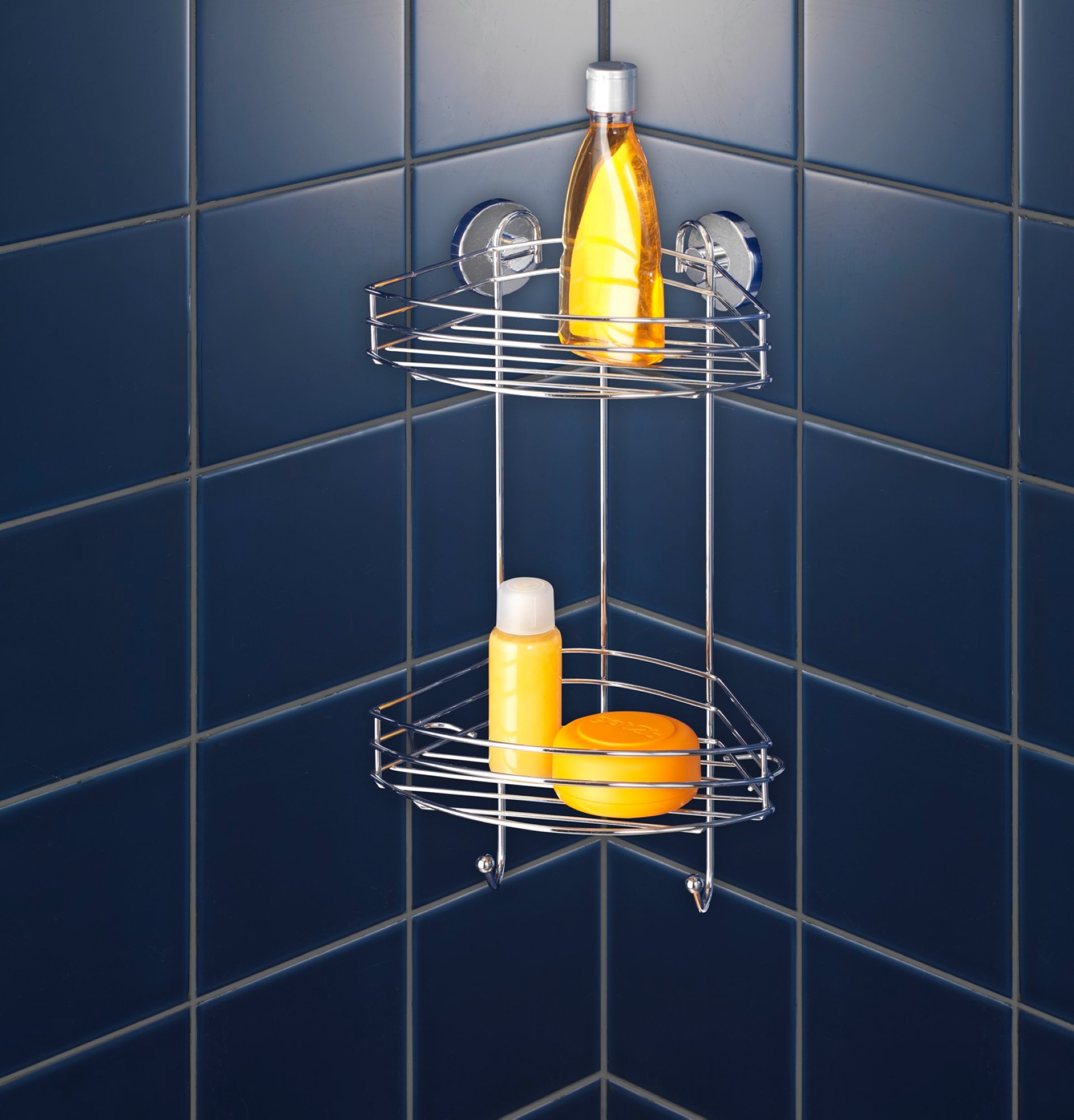 WENKO VACUUM-LOC Dusch Eckablage Chrom glänzend, 2 Etagen, Befestigen ohne Bohren